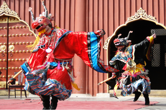 內(nèi)蒙地區(qū)的查瑪樂舞已與藏族地區(qū)的“羌姆”明顯不同。隨著藏傳佛教傳入蒙古地區(qū)后,積極的吸收和融合了蒙古族傳統(tǒng)音樂舞蹈和薩滿教神舞的因素后形成了蒙古化的查瑪樂舞。因此,內(nèi)蒙地區(qū)的查瑪內(nèi)具有復(fù)合型和多元性特點(diǎn)。2008年,查瑪樂舞被列入國家級非物質(zhì)文化遺產(chǎn)。