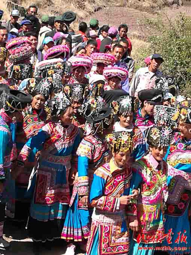 身著艷麗服飾的送親隊(duì)伍