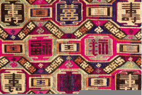 北京服裝學(xué)院民族服飾博物館藏“土家族福祿壽喜紋錦”局部。