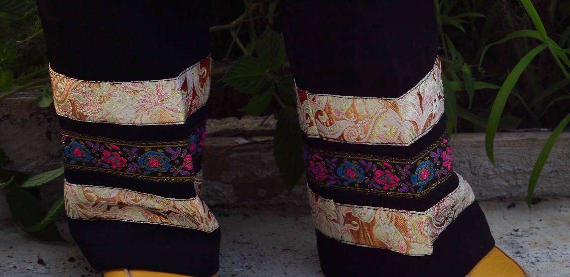 傳統(tǒng)服飾是由布依族傳統(tǒng)工藝制作而成,其上衣以藍(lán)色打底的斜襟衣和白色打底的圍腰為主,上衣對襟處繡有花草圖案作為裝飾,圍腰上部也繡有花草圖案作為描邊。下身則以黑色長褲和灰色長褲為主,衣飾上所有的雕花刺繡圖案全部出自之手。多從市場上購買。其上身對襟處和圍腰上部也繡有花紋圖案,但是這些花紋圖案則是現(xiàn)代機(jī)器之功,下身以黑色打底的長褲為主,在褲腳處繡有花草圖案,上板村布依族女性們還有一個習(xí)慣,就是不管是穿戴傳統(tǒng)服飾還是現(xiàn)代服飾都會戴有黑色圓帽?! ?/p>