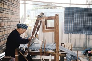 黃奶奶在織布。