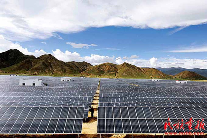 17個省市、60多個中央和國家機關(guān)、17家中央企業(yè),先后選派8批近7500名援藏干部進藏工作,為西藏改革發(fā)展穩(wěn)定作出了重要貢獻。圖為山東省援建的日喀則市光伏電站