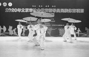 2020年北京市社會體育指導員民族體育項目交流展示賽日前在北京市民族文化交流中心舉辦,來自全市16個區(qū)的40支代表隊交流展示了民族健身操、舞龍、太極拳等項目。