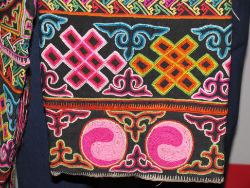 土族的刺繡堪稱一絕,是我國少數(shù)民族刺繡藝術(shù)中的一朵奇葩。土族刺繡所用的布料有絲綢、斜紋布、條絨布、自制手紡棉粗布、絨毛布等,為襯托色彩絢麗的線繡圖案,布料顏色以黑、紅、藍(lán)三色為主。繡線有棉線、絲線、銅絲線和金銀捻線等。常用的繡法有平繡、盤繡、鎖繡、切針繡、剪貼繡等。土族的刺繡品種多樣,構(gòu)圖飽滿,色彩艷麗,多用在腰帶、衣領(lǐng)、筒袖、鞋面、煙袋等衣物和裝飾品上?;ブぢ橐粠У耐磷迥星嗄晷厍按蠖加袎K四寸方連續(xù)圖案,叫“富貴不斷頭”。土族女子到七八歲就開始跟著母親、姐姐等學(xué)習(xí)刺繡藝術(shù),等到了十七八歲就練就出一手好針線活了。到了節(jié)慶集會(huì)的時(shí)候,土族婦女會(huì)拿出自己的刺繡精品,展示自己的刺繡藝術(shù)。未婚姑娘非常珍愛自己的刺繡品,如果有哪位小伙得到了姑娘的刺繡品,就相當(dāng)于得到了她的芳心(劉軍供圖)。