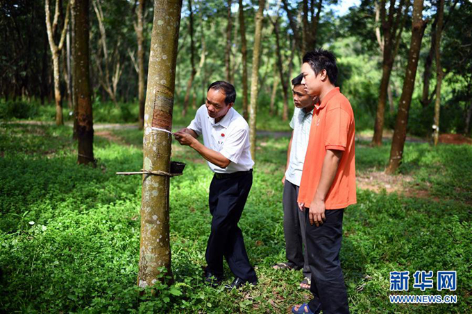村民不想種,羊風(fēng)極和黨員干部們帶頭種;沒錢,他到鎮(zhèn)里、縣上跑扶貧種苗,幫助貸款;沒技術(shù),他邀請(qǐng)熱科院專家前來給村民們培訓(xùn)橡膠管理和割膠技術(shù)。廣泛宣傳和示范帶動(dòng)加上熱心的服務(wù),村民們開始跟著他種植橡膠樹。如今,全村的山地基本上都種上了橡膠樹,僅此一項(xiàng),去年村民人均收入就達(dá)約6000元。