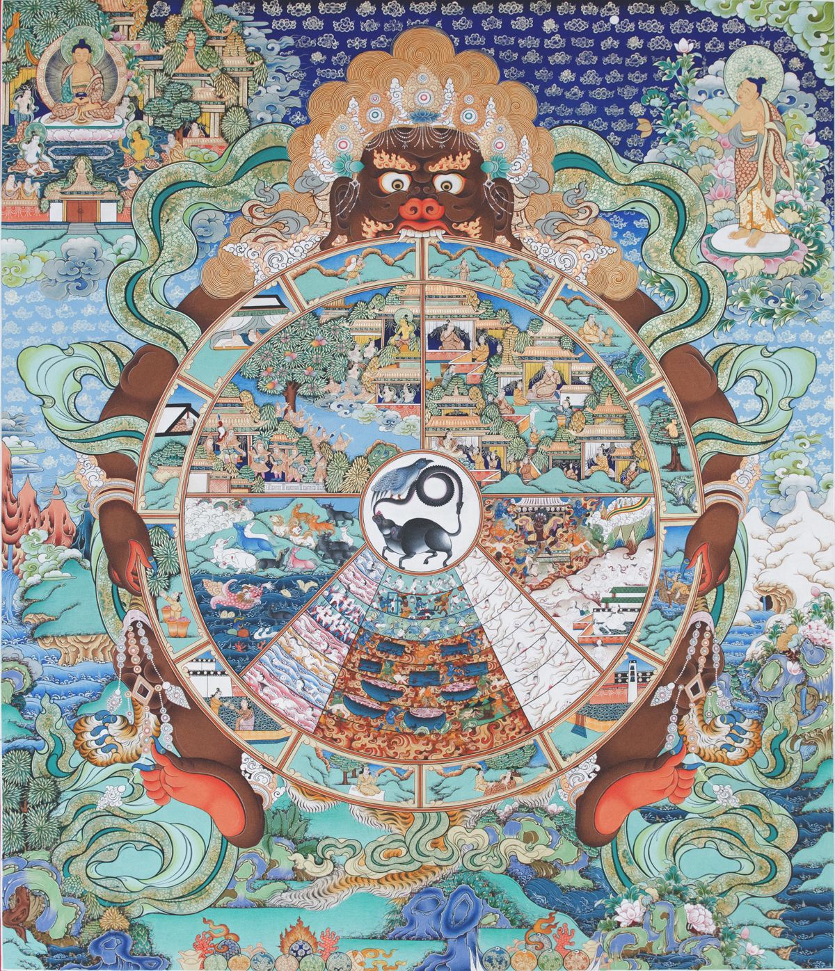 一切有情,皆以諸欲因緣,自作自受,如車輪回轉(zhuǎn)不已,生死于六條道趣,接受制裁。所謂六道,即:人、天(化生)、阿修羅(魔)、地獄、餓鬼、畜生(三惡道)。然在六道中,卻以人道為中心,因人心的善惡觀念而隨心所欲的去追求,造成報(bào)果。如人在日常中的語言、動(dòng)作、思想,守法實(shí)踐持三戒(五戒:不殺生、偷盜、邪淫、妄言、飲酒)以上者,可得六根整然的人身,五戒圓備者,即生大富大貴之家,長壽而揚(yáng)名于世。修持五戒,加行十善(身:不殺生、偷盜、邪淫。口:不惡口、妄言、綺語、兩舌。意:不貪、瞋、癡。),即生天界,天分為欲界天、色界天、無色界天。上述五戒加十善,乃生欲界天,再加修正觀坐禪,證初禪至四禪,即生色界天。趨入四空定,即生無色界。但雖至非想非非想天,還是降伏業(yè)惑而已,無法脫離生死輪回,故古人說:三界無安,猶如火宅。如果人于日常生活中,雖有十善心布施,但帶有名利好勝,即生阿修羅界(須彌山腰),阿修羅是具天福而缺天德,因地污曲所致。如果人于日常中,失去道德戒行,生起慳貪心,即墮餓鬼道界,生起瞋癡心,即墮畜生界,犯五逆十惡者,即墮地獄界。以上釋義引自《君友會(huì)、六道輪回卷》綜上:六道輪回的善惡報(bào)趣,盡在人心的一念,能趨于善,即上升天界,起一念惡,即墮惡道,因果昭彰。