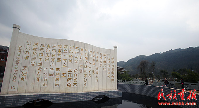 姑掛水族文化體驗(yàn)區(qū)前的水書(shū)石碑