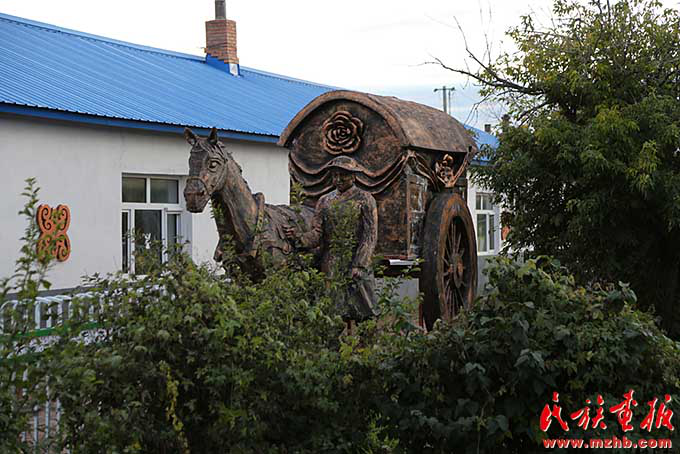 坤河村富有達斡爾族民族特色的雕塑
