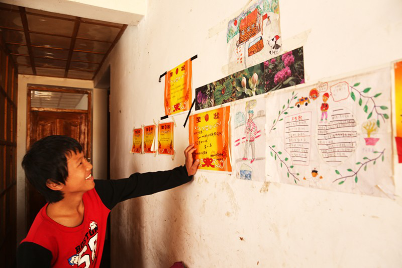 13歲的龍初杰是貢山縣一中初一學(xué)生,弟弟初濤在獨龍江鄉(xiāng)中心小學(xué)讀五年級,小弟弟初夏上村小三年級。趁著放假,兄弟三人都回到了龍元村的新家中。