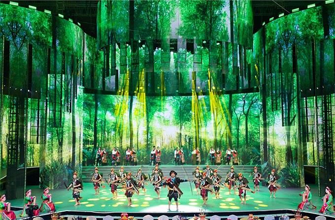 晚會十分注重對民族優(yōu)秀傳統(tǒng)文化的創(chuàng)新繼承和創(chuàng)造轉化,用視聽語言、現(xiàn)代方式、先進技術展現(xiàn)出美不勝收的中華傳統(tǒng)文化韻味,具有強烈的民族性、時代感和藝術性。女子群舞《甲·萱》、男子群舞《果沃情》《踏地歡歌》、男女群舞《康鼓弦韻》等,以列入國家級非物質文化遺產代表性項目名錄的傳統(tǒng)歌舞為素材,以年輕人喜愛的方式呈現(xiàn)傳統(tǒng)文化的獨特魅力,經(jīng)過精心編排和充滿意境的現(xiàn)代舞臺包裝,既保留了傳統(tǒng)歌舞的風格韻味和特色,又具有鮮明的時代氣息,成為整臺晚會的亮點。