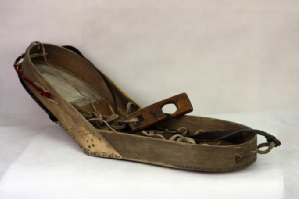 搖籃是鄂倫春族的傳統(tǒng)育嬰工具(如圖,吳雅芝供圖)。游獵時期居無定所,騎馬游動的時候母親把搖籃背在背上,孩子餓了,只需把搖籃轉(zhuǎn)到胸前就可以喂奶,不必下馬。有人在搖籃頭頂部位掛三個束紅腰帶的黑布小人,作為孩子的護身符,據(jù)說能保佑孩子健康成長。也有人在搖籃頭部兩側(cè)掛木刻的小老鼠和小鳥,預(yù)示孩子像小老鼠一樣伶俐機智,像小鳥一樣展翅飛翔。