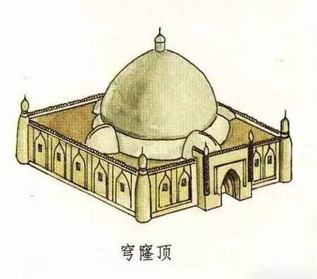 穹窿本身指天空,也形容如天空般中間高、四周下垂的樣子,同時(shí)也泛指高成拱形的建筑形式。穹窿頂就是穹窿式的屋頂,一般從外觀來看為球形或多邊形的屋頂形式。如,伊斯蘭教清真寺中的天房,室內(nèi)頂部呈半圓形,就可以叫做穹窿頂。此外,蒙古族的蒙古包等圓頂?shù)拿窬?,也可以歸為穹窿頂建筑一類。因此,穹窿頂也稱圓頂。