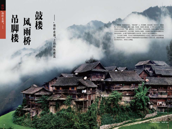 建筑是一部凝固的歷史。“南嶺走廊”上,層巒疊嶂,溪流縱橫,雨水充沛,森林密布。生活在這里的苗族、侗族、瑤族、布依族、壯族等少數(shù)民族,在千百年的勞動生產(chǎn)實踐中根據(jù)當?shù)氐牡匦?、氣候、建筑材料、生活習慣等,不斷總結(jié)經(jīng)驗,創(chuàng)造性地修建了獨具地方特色的吊腳樓等民居,以及風雨橋、鼓樓等公共建筑,這些建筑在展示我國傳統(tǒng)建筑文化多樣性的同時,也豐富了我國傳統(tǒng)建筑文化的內(nèi)容,成為不可缺少的組成部分。