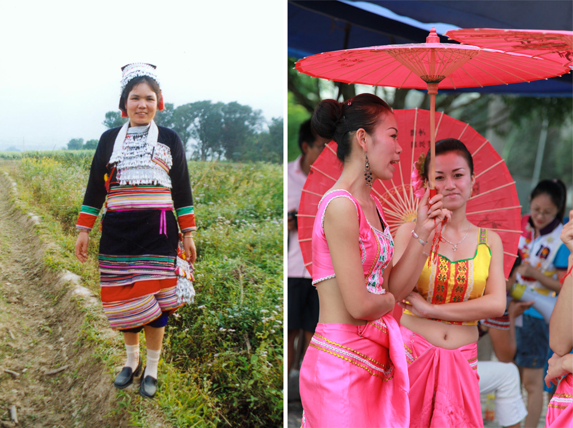 元江傣族民國時期銀泡土布女服與德宏傣族民國時期花綢織錦男服