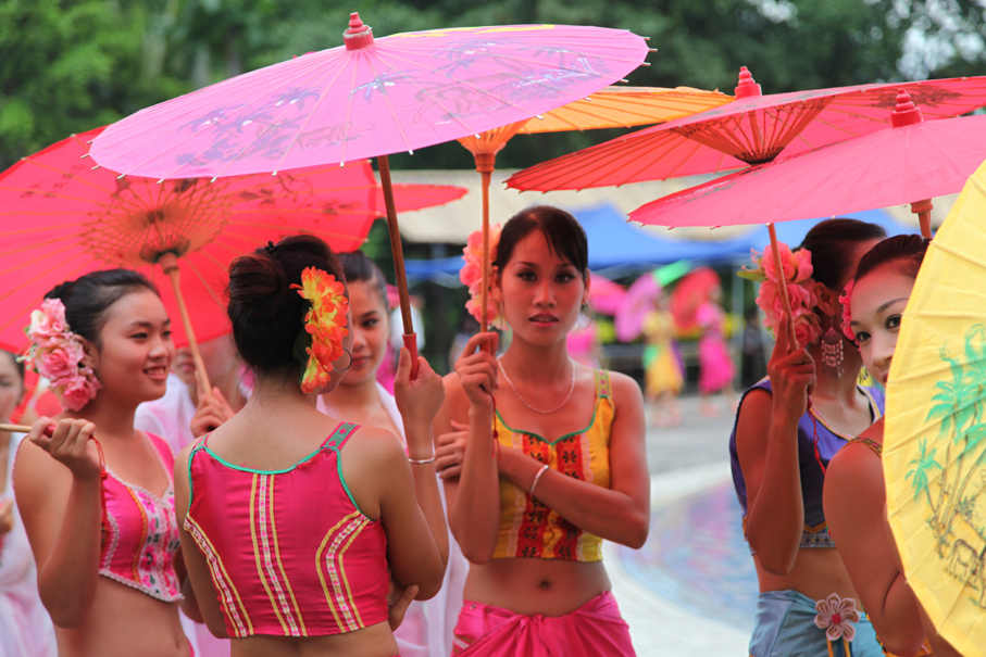 傣族新年。時在傣歷六月二十四到二十六日(夏歷四月中旬),節(jié)期三、五天。節(jié)日清晨,男女老幼沐浴更衣,到佛寺賧佛,即給佛像灑清水洗塵,然后互相潑水,除疾消災(zāi)。后演為以潑水為戲的節(jié)日。相傳,古有火魔無惡不作,搶走7個姑娘。最年輕的姑娘儂香,得知了殺死火魔的秘密:拔下它的頭發(fā)把它勒死。魔頭成一團(tuán)火球,落在哪里,哪里就起火。姑娘們即挑水相潑,滅了邪火。此傳說相沿成習(xí),漸成潑水節(jié)。一說此俗源于印度,婆羅門教徒每年此時到河中沐浴,洗去罪惡;年邁者不能下河,子女便為其潑水洗罪。后傳入中國傣族地區(qū)。