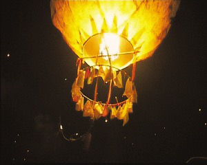 燃放“貢菲”,需要多人幫忙。首先要用火把點(diǎn)燃牛油等制成的燃料,讓孔明燈內(nèi)充滿熱氣,等到它直立向上沖的時(shí)候,大家一齊放手,孔明燈就飛向高空。隨著燈底圓口處的明火繼續(xù)燃燒,孔明燈越飛越高,燈內(nèi)攜帶的鞭炮不時(shí)發(fā)出噼噼啪啪的響聲,仿佛在祝福傣鄉(xiāng)人民吉祥如意、幸福安康。