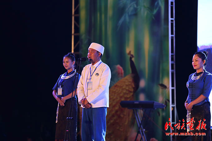 18日晚,盈江縣委副書記、縣長巖補宣布傣歷新年慶典活動正式開幕