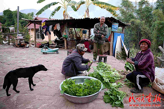 在娜作家記者見到了娜作的老伴兒大巖恩,他邊清理打捆著剛剛采摘下來(lái)的青菜邊說(shuō):“這些小菜城里人特別愛(ài)吃,沒(méi)有上化肥,一點(diǎn)污染沒(méi)有。這筐菜在城里一定能賣個(gè)好價(jià)錢?!?/p>