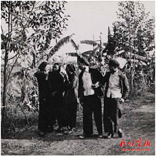 “歌圩”是桂西壯族古老的風俗。每年農(nóng)歷正月、二月、四月都有歌圩日。圖為1957年廣西壯族自治區(qū)憑祥市郊區(qū)的歌圩日,這里不但處處歡歌笑語,還有搶花炮、演壯戲、舞彩龍、舞彩鳳、唱桂劇等很豐富的文娛活動