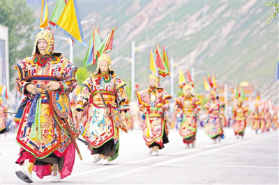 2017年7月24日下午,一場名為“瀟灑的康巴人”玉樹風(fēng)情巡游在玉樹藏族自治州州府玉樹市街頭上演。來自玉樹州一市五縣的康巴藏族兒女或馭駿馬、或盛裝、或歌舞,以行走巡游的方式展示當(dāng)?shù)鬲毦咛厣拿褡迕袼孜幕8骺h巡游隊伍從感恩廣場出發(fā),途徑結(jié)古大道、民主路,最終到達玉樹軍分區(qū),沿途圍滿了觀看的群眾和游客,據(jù)悉,此次巡演在玉樹州尚屬首次。