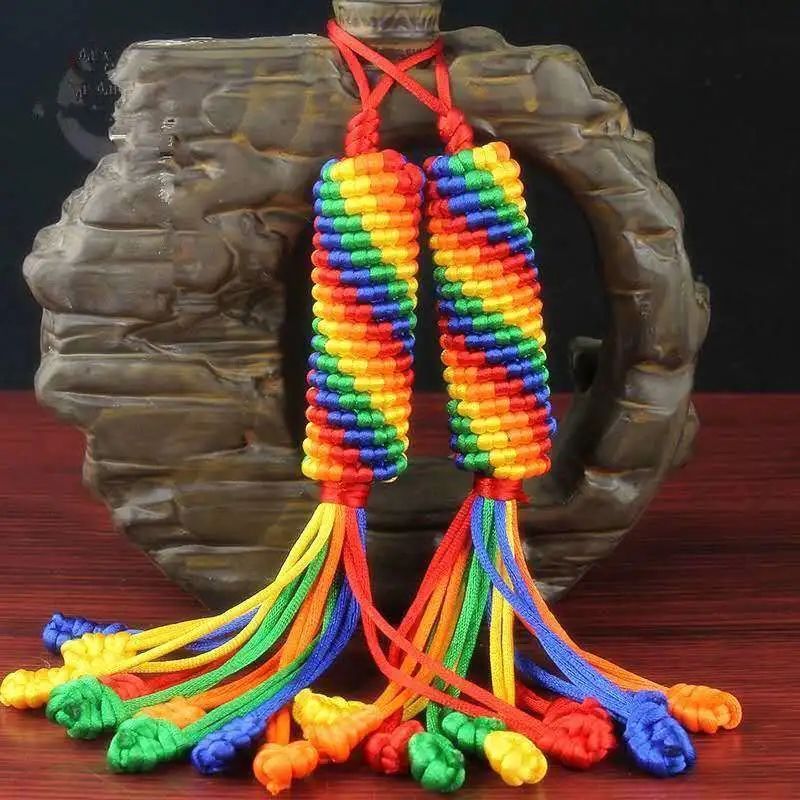 科爾沁繩藝的藝術(shù)特色蘊(yùn)涵著鮮明的民族特色與濃厚的鄉(xiāng)土氣息,不管是在繩結(jié)的造型特征、色彩和精雕細(xì)琢的工藝上都有別具一格的藝術(shù)特色。