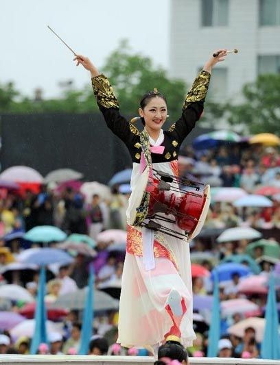 古代的長鼓,用獐皮做左邊的厚鼓皮,用狗皮做右邊的薄鼓皮,鼓筒采用木材或多層紙、薄鐵等材料制成。長鼓有沙市6個銅制的龍頭形鉤子,鉤住松緊繩.松緊繩用三股真絲線制成,每只鼓上裝有8全套袖,即用來調(diào)整鼓繩的皮套。長鼓起源于我國的宋代,后來流傳到朝鮮半島,成為朝鮮民族音樂的主要打擊樂器。我國東北朝鮮族聚居的地方,長鼓在朝鮮族音樂和舞蹈中起重要作用。長鼓的右邊用一根飾彩穗的竹條敲,左邊用手,右邊聲高左邊聲低,能敲擊出豐富多彩的節(jié)奏,著名的朝鮮族長鼓,在全世界聞名,藝術(shù)水平相當(dāng)高,真正代表了能歌善舞的朝鮮民族的藝術(shù)特色。