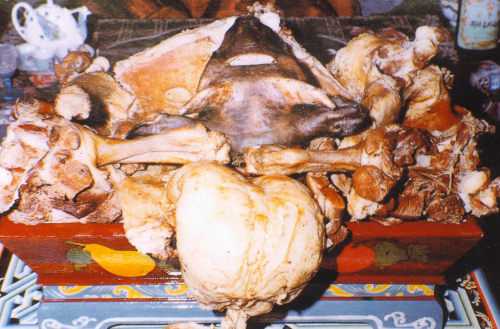 全羊席,又稱整羊席(蒙古語為“布禾勒”或“酥斯”),是蒙古人招待貴賓的傳統(tǒng)佳肴,也是蒙古民族最古老、最隆重的一道宴席,一般只在盛大宴會、隆重集會、舉行婚禮或接待高級貴賓時擺設(shè)。將整羊加工后擺在長方形的大木盤里,像一只臥著的羊,肉味鮮美,香飄滿堂。賓客在進(jìn)餐前,還要舉行一定的儀式,高唱贊歌,朗誦獻(xiàn)整羊祝詞等。據(jù)文獻(xiàn)記載,成吉思汗曾設(shè)過全羊宴。忽必烈登基時,也設(shè)全羊宴祭神祇、待賓客。至清代全羊宴更加盛行,現(xiàn)已成為蒙古民族風(fēng)格接待貴賓的名貴菜肴,馳名中外。