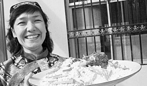 烤羊肉串是風(fēng)靡大江南北、婦孺皆知的維吾爾族風(fēng)味小吃,而抓飯卻鮮為人知。如果說烤羊肉串是民眾皆可大快朵頤的快餐,那么抓飯則是貴族式的高檔食品?;蛘哒f,烤羊肉串坐著、站著、走著,甚至歌著、舞著都可吃,而抓飯必須鋪地毯、展餐單,盛之精美的大盤中,長跪而食。