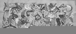 此外,還有一些苗繡圖案反映了歷史事件,比如貴州省博物館在上世紀(jì)80年代從一名苗族婦女手中征得一件上世紀(jì)50年代做成的苗族女服。令人驚嘆的是,經(jīng)考證,該衣的袖片圖案取材于一段真實的歷史——1855年張秀眉領(lǐng)導(dǎo)苗族農(nóng)民在臺拱起義的歷史事件。