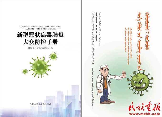 內(nèi)蒙古科學技術(shù)出版社出版的《新型冠狀病毒肺炎大眾防控手冊》(蒙古文版、電子版)。