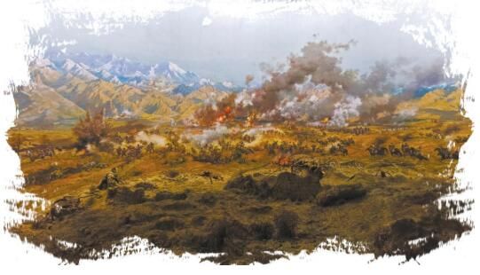 中國工農(nóng)紅軍西路軍紀(jì)念館內(nèi)復(fù)原當(dāng)年戰(zhàn)斗場景的油畫。賈泓 鄭思哲攝