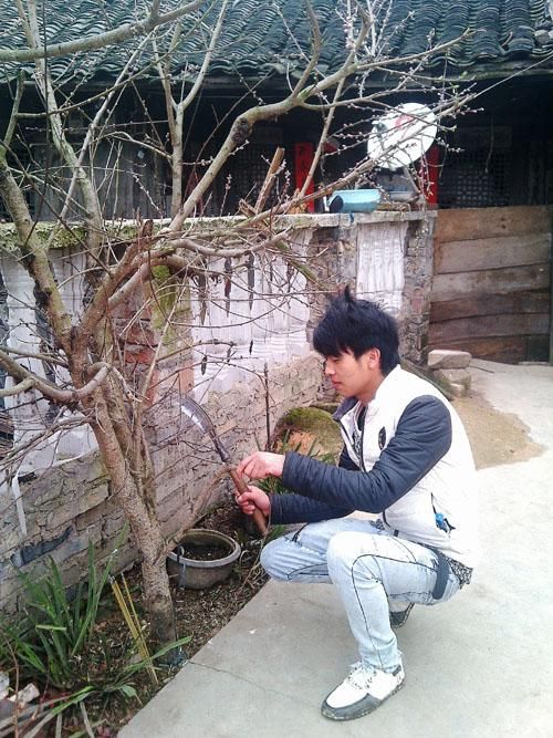 圖為革家后生用柴刀在給果樹“放血”,確保果樹開花結果