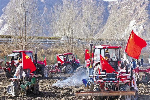 “現(xiàn)在國(guó)家大力支持農(nóng)業(yè)發(fā)展,不斷推進(jìn)農(nóng)業(yè)機(jī)械化,我們不僅不用自己耕地,而且效率和產(chǎn)量都提高了很多,我們家富余的勞動(dòng)力外出就業(yè),一家人的生活也越過(guò)越好啦?!眳f(xié)榮村村民索朗曲培說(shuō)。
