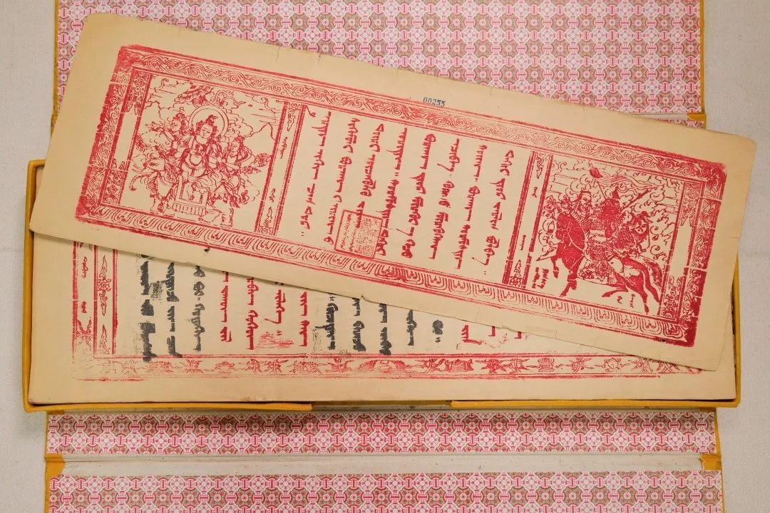 今天我們主要講述的是1716年北京木刻本蒙古文《格斯?fàn)杺鳌罚ㄈQ為《十方圣主格斯?fàn)柨珊箓鳌罚┦乔蹇滴跷迨迥辏?716)北京木刻本。梵夾裝,1卷(176葉),每頁(yè)26行,每行6個(gè)字,約5萬(wàn)多字,頁(yè)面高17.2cm、寬52cm,版框高13.5cm、寬46.5cm。版框左側(cè)有漢文《三國(guó)志》三字,首頁(yè)刻有朱印佛像。