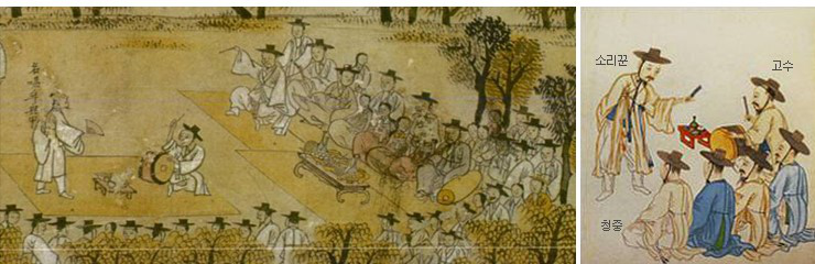 盤嗦哩通常由一人演唱,另一人用鼓伴奏。這種形式大約在18世紀(jì)中朝鮮王朝后期開始出現(xiàn),19世紀(jì)末是它的黃金時(shí)代。關(guān)于它的起源有兩種不同的看法,一種認(rèn)為它是18世紀(jì)的游浪藝人根據(jù)某種戲劇創(chuàng)造的,另一種則認(rèn)為是來源于薩滿教儀式中的歌曲。盤嗦哩的故鄉(xiāng)是韓國(guó)全羅北道的南原,至今那里仍盛行這種演唱。
