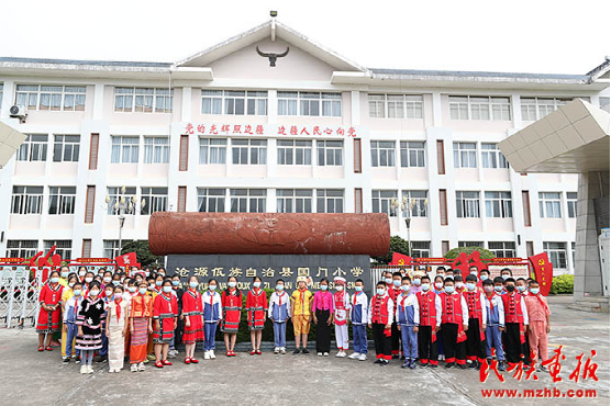 云南省臨滄市滄源佤族自治縣國(guó)門(mén)小學(xué)是一所位于中緬邊境線(xiàn)上的縣直小學(xué),創(chuàng)辦于1937年2月,曾四易校址,六更校名。學(xué)校現(xiàn)有38個(gè)教學(xué)班,在校學(xué)生1668人,其中少數(shù)民族學(xué)生1172人。在開(kāi)展民族團(tuán)結(jié)進(jìn)步教育工作中,滄源佤族自治縣國(guó)門(mén)小學(xué)以社會(huì)主義核心價(jià)值觀(guān)為引領(lǐng),以德育工作為抓手,充分發(fā)揮少先隊(duì)組織的作用,形成了以學(xué)校為龍頭、家庭為基礎(chǔ)、社會(huì)為平臺(tái)的民族團(tuán)結(jié)育人團(tuán)隊(duì)。
