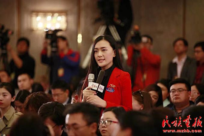 在全國(guó)兩會(huì)媒體記者會(huì)上,王金梅代表中國(guó)網(wǎng)現(xiàn)場(chǎng)提問(wèn)。