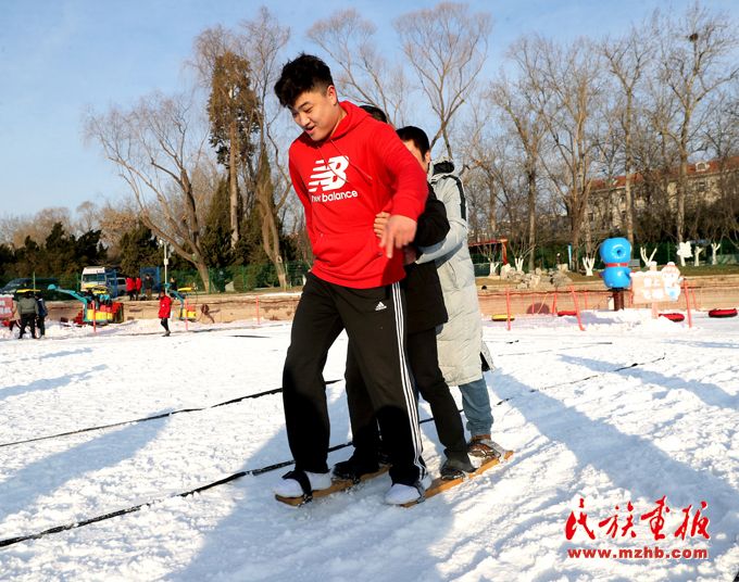 為了更好地將冰雪趣味健身賽事、冰雪健身體驗(yàn)活動(dòng)等送到全市各族群眾身邊,北京市民族傳統(tǒng)體育協(xié)會創(chuàng)造性地將綾球、高腳競速及板鞋競速等少數(shù)民族傳統(tǒng)體育項(xiàng)目與冬季冰雪相結(jié)合,整理、發(fā)展了雪地綾球、雪地高腳、雪地板鞋等項(xiàng)目,在現(xiàn)場進(jìn)行展示交流,吸引大批群眾熱情參與。