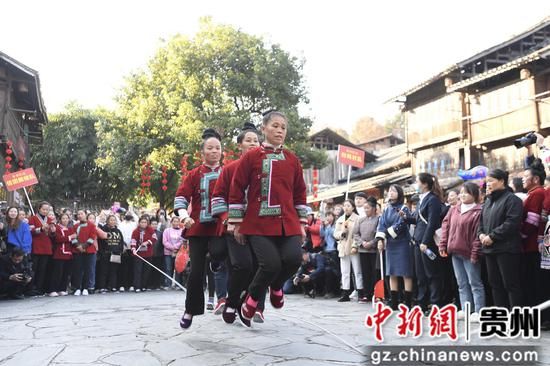 侗寨彩虹跑、綁腳競速、拔河比賽、丟豬腳接力賽、團(tuán)隊(duì)跳繩、套圈圈等,一系列運(yùn)動會項(xiàng)目讓村民樂在其中。打糍粑、蠟染等民俗活動讓游客和村民其樂融融。