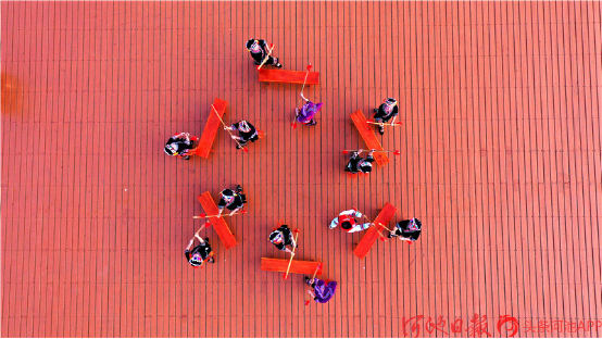 都安縣500名群眾歡聚一堂,打起扁擔(dān),喜迎“三月三”。