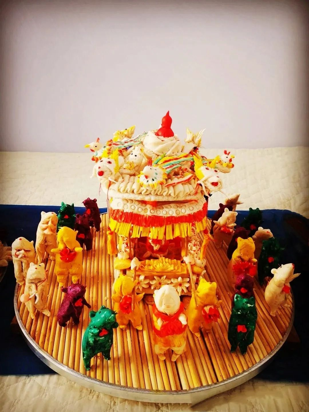 由于托克托縣地理位置獨特,早在清朝時期是塞外聞名的“水旱碼頭”,這里交通便利,經(jīng)濟繁榮??涤呵瑫r期兩翼土地的放墾,成為口外漢族村落形成的主要原因。到乾嘉之際,土默川縱橫900余里田陌相望,農(nóng)商兩業(yè)日臻繁盛。大批山西、陜西、河北等地農(nóng)民、商人、小手工業(yè)者紛紛來到這里種田、經(jīng)商及傳授手工技藝。從而晉陜地區(qū)的捏面人手工技藝也被帶到托克托縣地區(qū),在這里漢族和少數(shù)民族(主要是蒙古族)相互融合,形成了獨具特色的托克托縣面塑技藝。內蒙古自治區(qū)級非物質文化遺產(chǎn)代表性傳承人薛籽女,托克托縣章蓋營村人,是自治區(qū)級托克托縣面塑傳承人,下面展示的是她創(chuàng)作的面塑作品:《老鼠娶親》、《鼠年抗疫情》、《千手觀音》。
