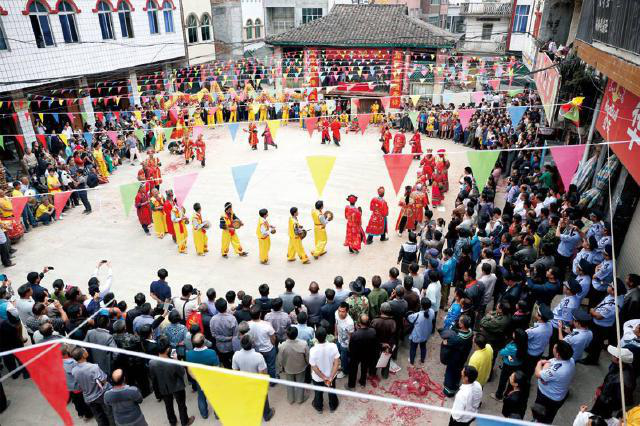 在酬謝自然之神后,由祭司念誦祭文,紀念民族英雄瓦氏夫人,頌揚瓦氏夫人率領將士打擊倭寇的英雄事跡,傳授民族歷史知識,宣揚保衛(wèi)家園、謀求平安的民族精神。