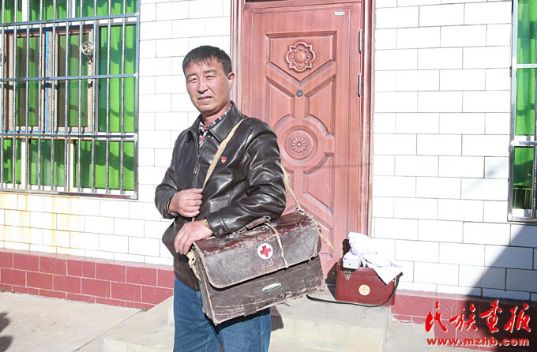 一只老式的皮藥箱、一匹馬、一個裝滿藥的馬褡子、一件綁在馬鞍后的皮大衣,見證了居馬泰·俄白克的牧區(qū)醫(yī)生生活,他那風塵仆仆的身影在包扎墩牧區(qū)已經(jīng)成為牧民們眼中最美的身影。