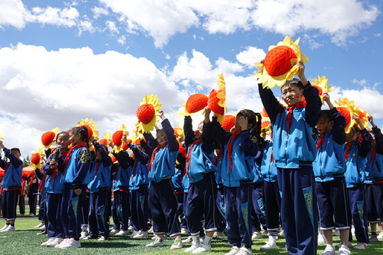 土默特左旗民族中學(xué)學(xué)生在運(yùn)動會上表演。(玉榮 供圖)