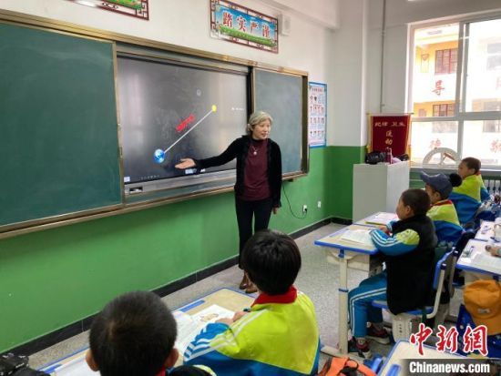 圖為天津市河西區(qū)平山道小學老師唐華,在莊浪縣第一小學支教,給學生上地理課。 (資料圖) 李順民 攝
