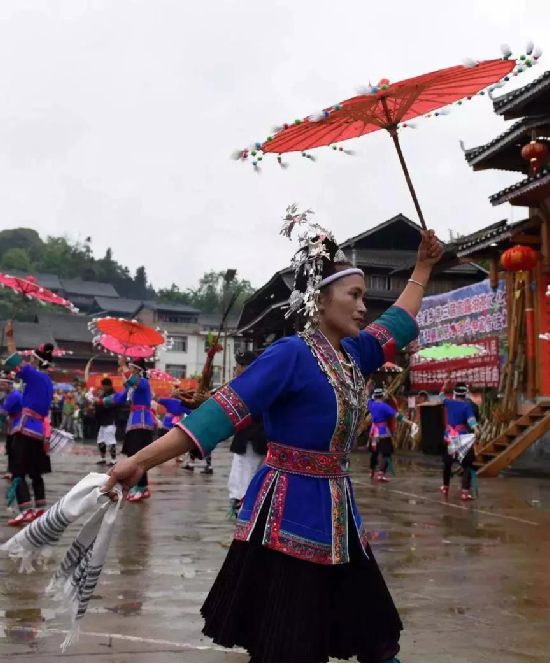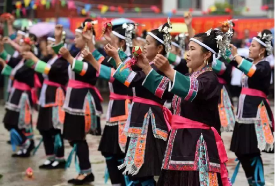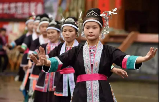 侗族婦女在表演民族舞蹈