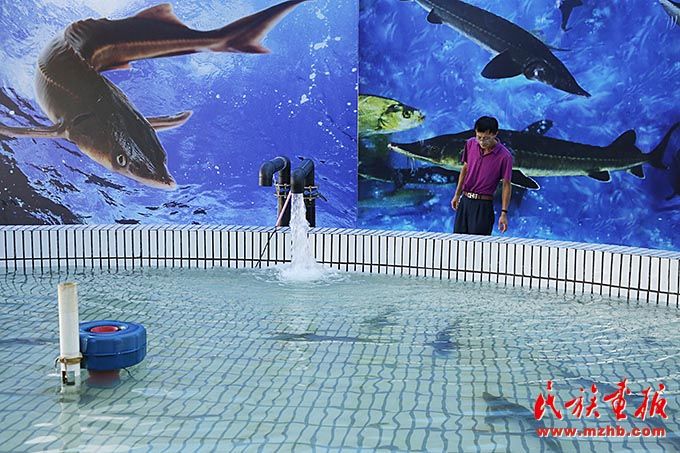 同江市赫哲族魚(yú)展館里養(yǎng)殖的鰉魚(yú),這些鰉魚(yú)養(yǎng)大后會(huì)放歸自然。