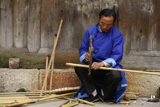 目前羅廷開利用農(nóng)閑和春節(jié)期間跟著羅朝貴學習技藝,同時對村里的蘆笙愛好者進行傳授。他的徒弟一個叫羅廷勇,2017年35歲,已經(jīng)學了5年。第二個是羅憲文,2017年才30歲,他學了將近3年。還一個就是羅憲標,現(xiàn)在他們都基本掌握了蘆笙制作技藝。