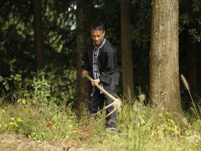 貴州貴陽苗族農(nóng)作物種植-田里鋤地