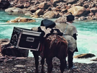 圖片說(shuō)明:被大江隔斷去路的放映員